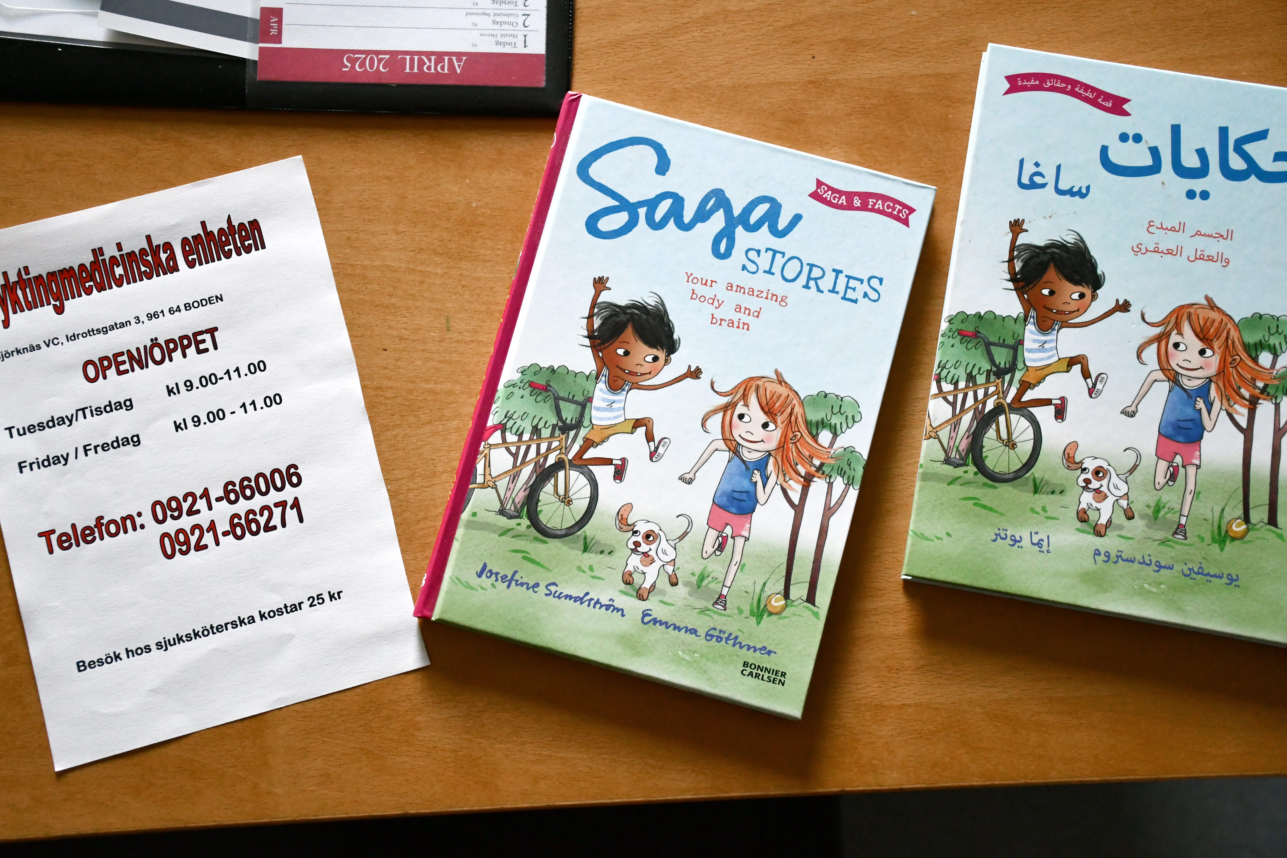 I behandlingsrummen finns material översatta till flera olika språk för att underlätta kommunikationen.