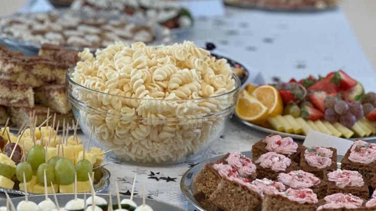 Nu återstår det att namnge den nya byggnaden, vilket verksamhetschefen Sinikka avslutar sitt tal med innan bandet klipps och glasgången förklaras invigd.