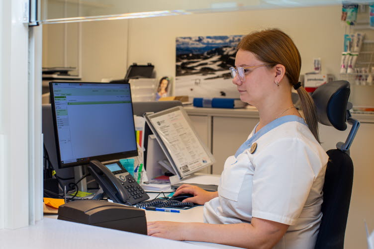 Receptionen blev nästa plats. Där har Tilde fått lära sig hur man bokar av och bokar om patienter som kommer in.