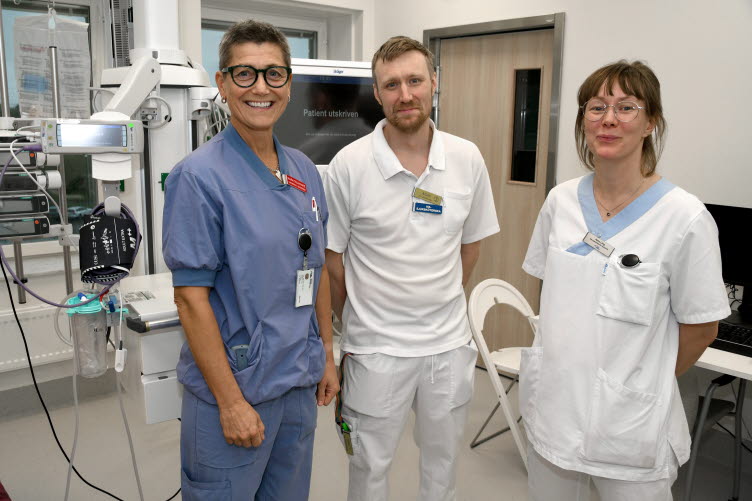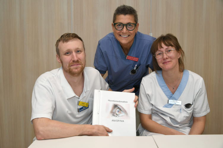 Adam Tunlind och Anna Lång är donationsansvariga IVA-sjuksköterskor på Sunderby sjukhus. Bakom dem Katarina Lindgren, narkosläkare och donationsansvarig läkare på IVA.
