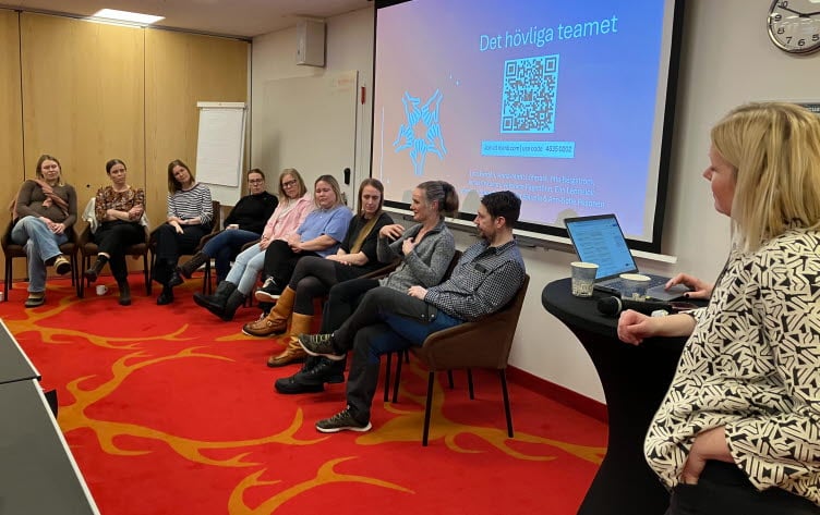 Panelsamtal efter Hanna Hövenmarks föreläsning för AnOpIva-medarbetare i Gällivare. Även medarbetare från Kalix var på plats.