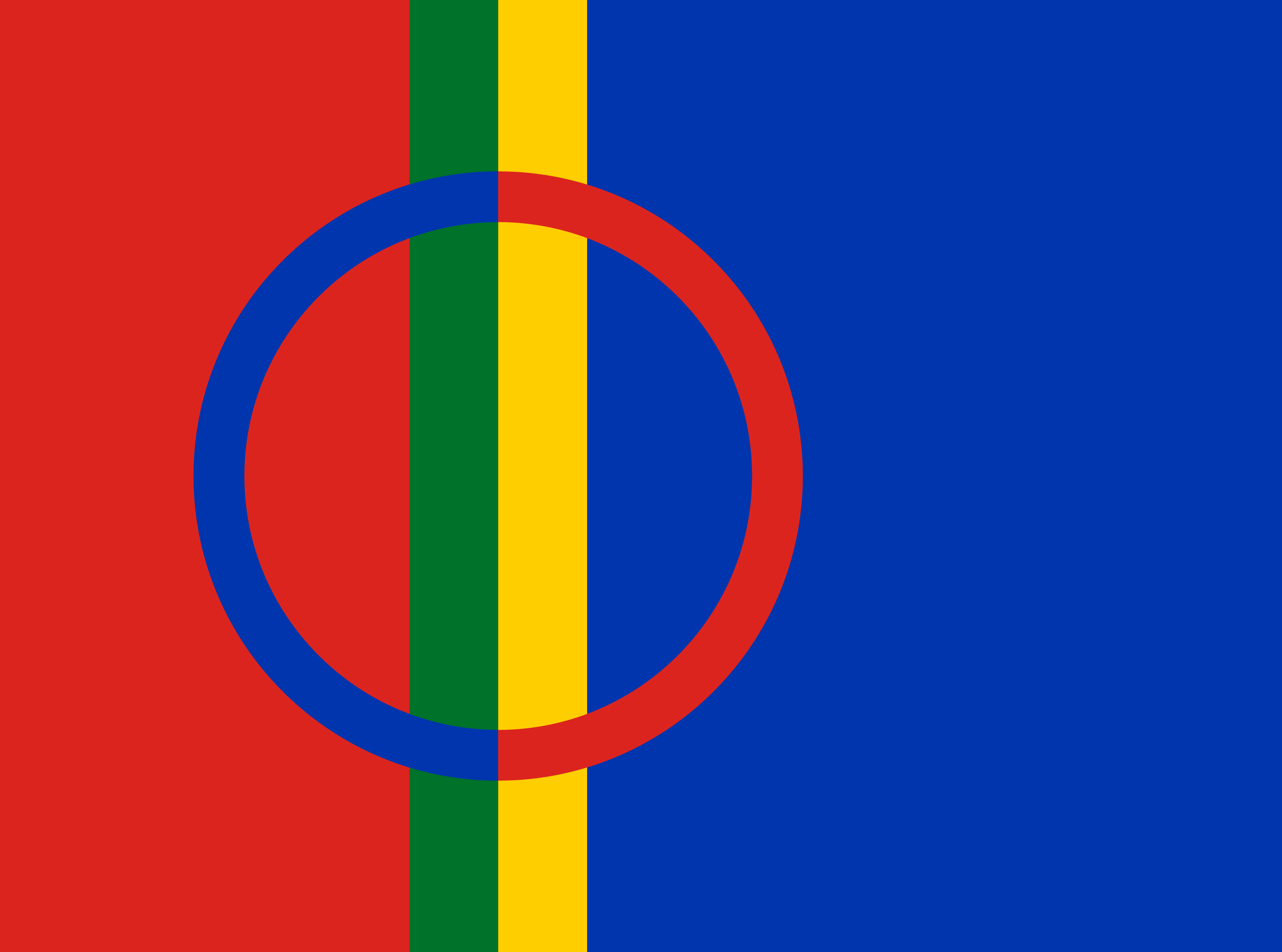 Cirkeln i den samiska flaggan är en sol- och månesymbol. Solringen är röd och månringen är blå. Färgerna kommer från den samiska dräkten.