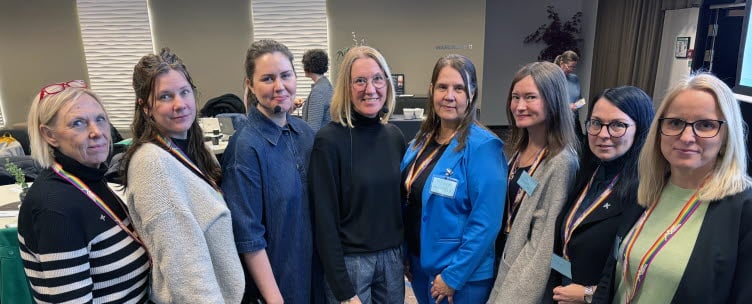 Delar av arbetsgruppen för kunskapsdagen från vänster: Helena Asklund (Norrbottens kommuner), Karin Spetz (psykisk hälsa och suicidprevention), Ida Andersson (processledare NAG adhd och autism), Gunilla Granholm (ordförande NAG adhd och autism), Malin Hemphälä (barn- och föräldrahälsan), Therese Lundmark (barn- och ungdomspsykiatrin), Johanna Luttu (Norrbottens kommuner) och Ulrika Hegstam (barnsjukvården).