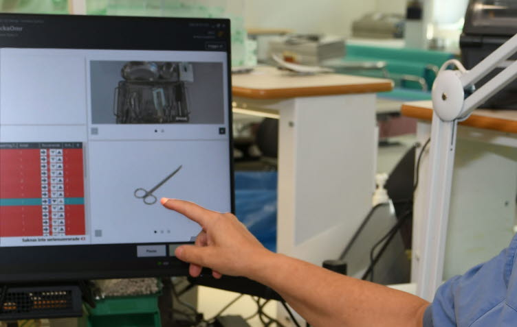 – Förr skedde kontrollräkningen med papperslistor och i värsta fall kunde man då missa en rad. Nu bockas varje instrument av i datorn innan vi kan gå vidare i processen. Det kan vara allt från specialinstrument till saxar, peanger, pincetter och små skruvar, säger Annica Lundström.