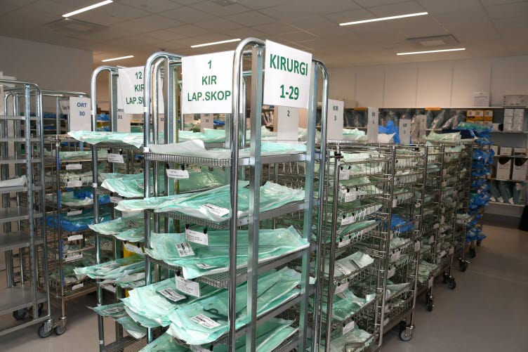 På lagret finns färdiga sterila enheter för olika typer av operationer, som operationspersonalen själva kan hämta ut. Vissa specialinstrument, speciellt ortopedens, kan väga väldigt mycket. Alla delar som hör till den nya operationsroboten kräver nästan en halvtidstjänst på Sterilcentralen för att rengöras och steriliseras.