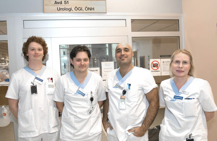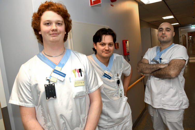 Björn Johansson och Olle Bergwall, sjuksköterskor, och Diego Franco, undersköterska, jobbar på avdelning 51, där patienter vårdas i samband med besvär från urinvägar, övre delen av buken (övre gastrointestinal kirurgi), öron/näsa/hals, mun/käke och ögon. Även nydiagnostiserade cancerpatienter vårdas där.