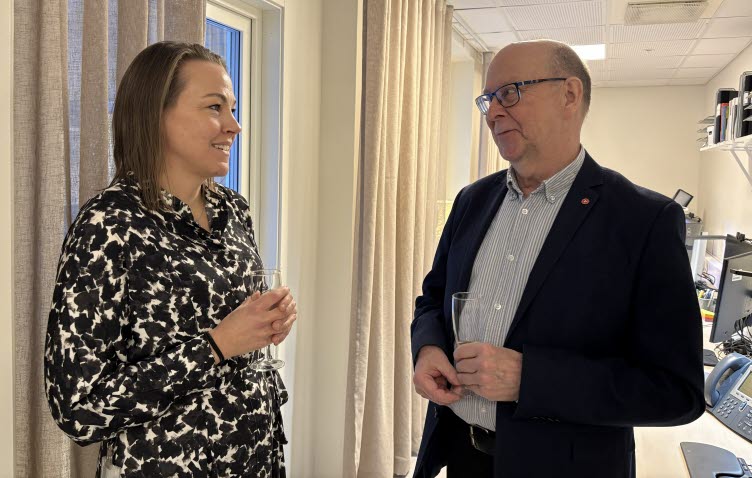 Johanna Törmä, verksamhetschef för forskning, utbildning och innovation och Glenn Berggård, (V), vice ordförande i regionstyrelsen.